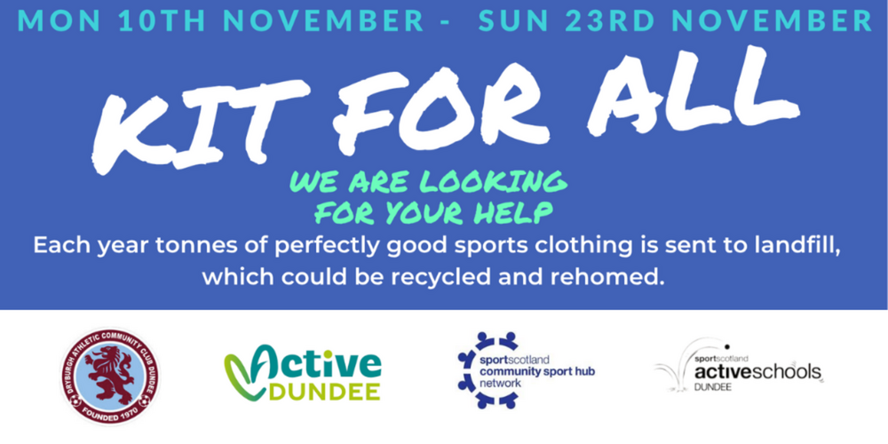All donations will be passed on through the Kit for All network and redistributed to people across Dundee who might otherwise struggle to access suitable clothing and equipment for sport.