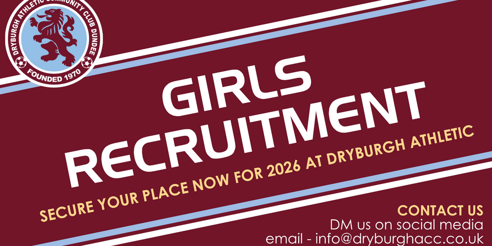 Secure your place in Dryburgh Athletic’s Girls football pathway NOW.