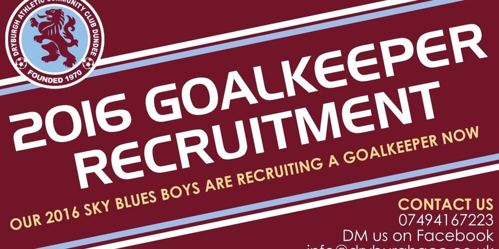 Dryburgh Athletic 2016s Sky Blues are recruiting a Goalkeeper now.