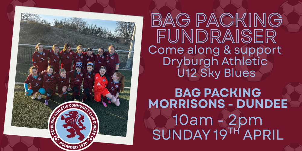 Join us at Morrisons, Dundee on Sunday 19th April (10am–2pm) for the Dryburgh Athletic U12 Sky Blues Bag Pack Fundraiser.